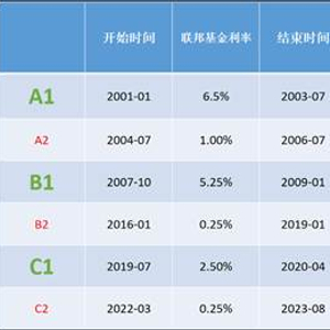 ATFX科普:2000年至今,美联储分别进行了三次降息周期,对应的开始与结束时间段分别为: