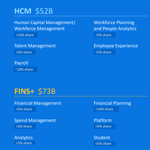 Workday 已将其业务扩展到各个行业的财务管理、财务规划、支出管理和数据分析。此举为 Workday 提供了一个重要的潜在市场,使其在每个特定产品类别中与不同供应商展开竞争。我相信向金融服务领域的扩张在战略上是合理的。