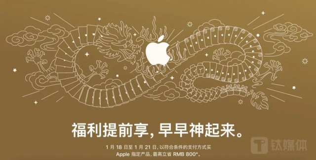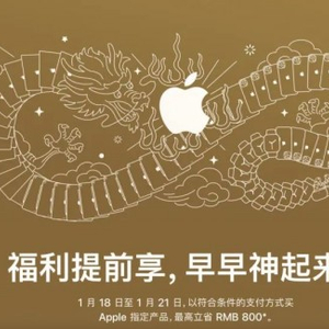 根据苹果中国官网公布的活动预告信息显示,将于1月18日-21日开启“迎新春限时优惠”。
