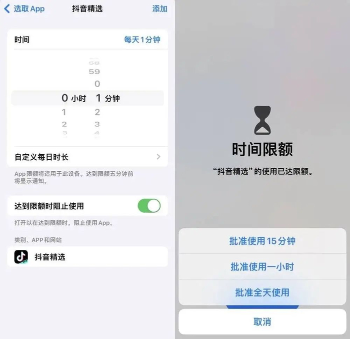 第一次到达时间限额,可以直接选择再使用一段时间,哪怕又到达了时间限额,输入屏幕使用时间密码,还是可以延长时间甚至全天使用的。