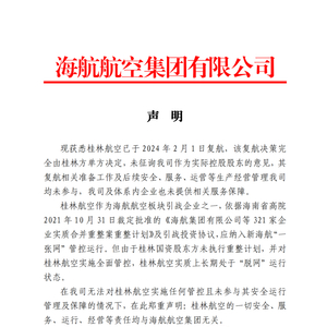 海航航空集团声明,桂林航空的一切安全、服务、运行、经营等责任均与海航航空集团无关。