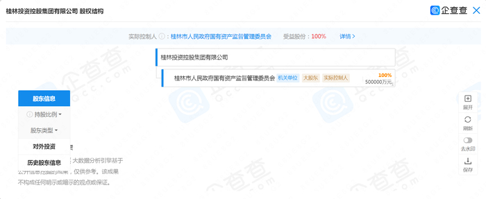 企查查信息显示,目前桂林航空的两大股东分别为桂林市交通投资控股集团有限公司(简称桂林交投)和桂林航空旅游集团有限公司(简称桂林航旅),分别持股60%和40%。穿透之后,桂林交投是桂林国资的全资子公司,桂林航旅由海南航空持股65%。