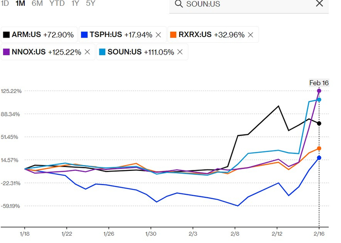 智通财经APP获悉,近期火爆美股的“英伟达炒股板块”吸引全球大批资金涌入,该板块之一的SoundHound AI(SOUN.US)上周暴涨近79%,Arm股价则三天实现翻倍。华尔街知名投资机构Wedbush Securities近日表示,AI芯片巨头英伟达(NVDA.US)宣布已对几家人工智能相关科技公司进行战略投资,其中包括近期股价暴涨的专注于语音领域的人工智能识别公司SoundHound AI,而这些投资可能仅仅是这家市值超万亿美元的芯片巨头AI投资宏图的最开端。