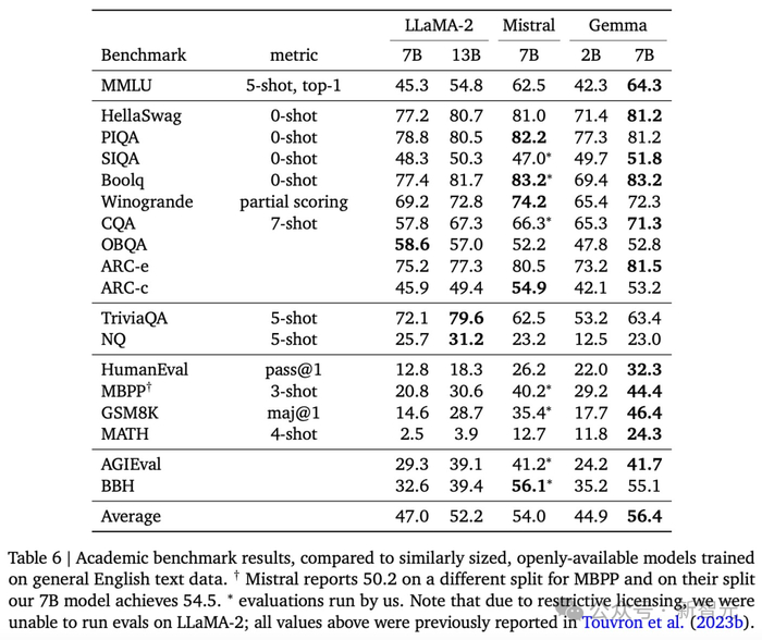 而在PIQA、ARC-c、Winogrande和BBH中,则不敌Mistral 7B。