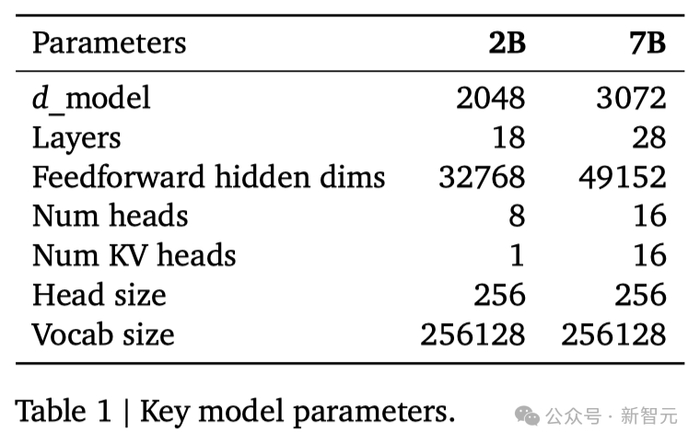 谷歌这次发布的两个版本的Gemma模型,70 亿参数的模型用于GPU和TPU上的高效部署和开发,20亿参数的模型用于CPU和端侧应用程序。在18个基于文本的任务中的11个中,Gemma都优于相似参数规模的开源模型,例如问答、常识推理、数学和科学、编码等任务。模型架构方面,Gemma在Transformer的基础上进行了几项改进,从而在处理复杂任务时能够展现出更加出色的性能和效率。- 多查询注意力机制其中,7B模型采用了多头注意力机制,而2B模型则使用了多查询注意力机制。结果显示,这些特定的注意力机制能够在不同的模型规模上提升性能。- RoPE嵌入与传统的绝对位置嵌入不同,模型在每一层都使用了旋转位置嵌入技术,并且在模型的输入和输出之间共享嵌入,这样做可以有效减少模型的大小。- GeGLU激活函数将标准的ReLU激活函数替换成GeGLU激活函数,可以提升模型的表现。- 归一化化位置(Normalizer Location)每个Transformer子层的输入和输出都进行了归一化处理。这里采用的是RMSNorm作为归一化层,以确保模型的稳定性和效率。架构的核心参数如下: