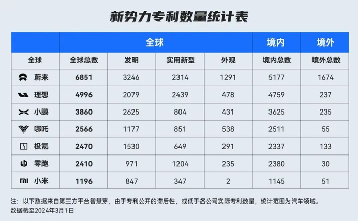 目前,蔚来的专利数量在新势力品牌中,优势明显。