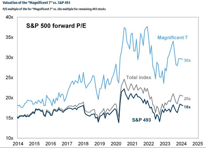 根据美国银行的数据,这七只股票目前占到了标普500指数总市值的近三分之一。