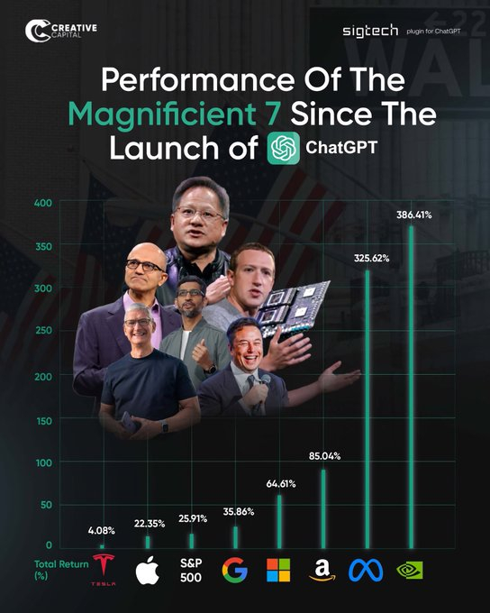 (自ChatGPT问世以来的七巨头和美股表现)
