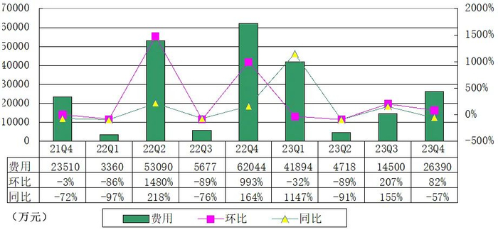 雾芯科技2023年第四季度销售开支为3800万元,2022年第四季度为9670万;总务与行政开支为2.04亿元(约2870万美元),而2022年第四季度为3.942亿元;研发开支为2190万元,而2022年第四季度为1.296亿元。