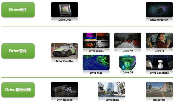 这些产品曾以NVIDIA Drive为品牌,分布在Drive硬件、Drive软件和Drive基础设施三大产品序列中。