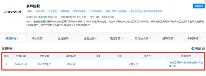 实际上,泉峰控股的实力是毋庸置疑的。早在2021年12月30日,泉峰控股便在香港联合交易所正式挂牌上市,因此泉峰控股亦被称作中国“电动工具第一股”。