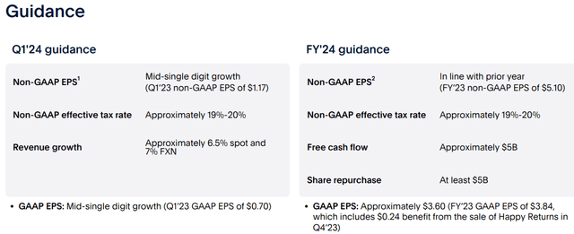 PayPal预计2024财年非公认会计原则每股收益将保持平稳增长,并计划将所有自由现金流用于股票回购。