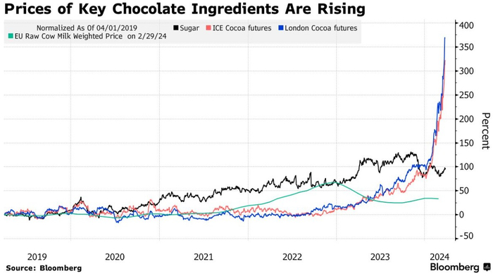 智通财经APP注意到,今年可可价格的突然大幅上涨,正对全球巧克力库存造成影响。投资者纷纷评估,如果这种关键原料的成本持续走高,糖果公司可能面临的影响。