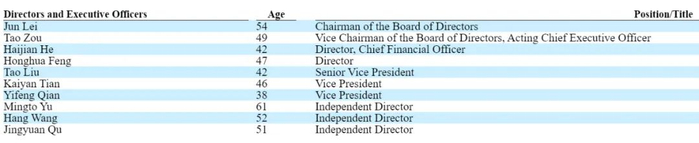 金山云执行董事分别为董事长雷军、副董事长、临时CEO邹涛、CFO何海建;董事分别为冯宏华;独立非执行董事分别为喻铭铎、王航、曲静渊女士。