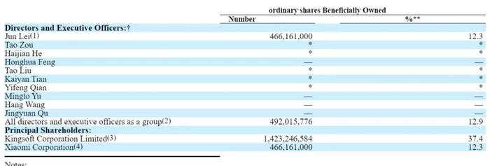 金山云日前递交20-F文件,文件显示,截至2024年3月31日,金山云执行董事分别为董事长雷军通过小米控制12.3%股权,金山持股为37.4%。