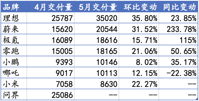新势力5月销量回暖:理想交付3.5万辆,蔚来、极氪创新高
