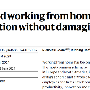 6月12日,斯坦福大学Nicholas Bloom香港中文大学(深圳)经管学院韩若冰携程集团联合创始人兼董事局主席梁建章,在国际顶尖学术期刊Nature上发表了题为:Hybrid working from home improves retention without damaging performance 的研究论文,该研究显示,灵活的混合办公制度能提升员工的工作满意度和留存率,且不影响员工的工作表现。