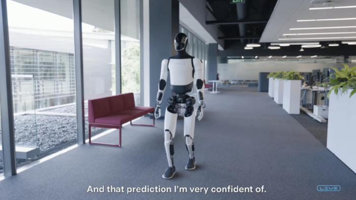 在股东大会上,马斯克承诺,将在2025年开始“限量生产”擎天柱,并于明年在自己的工厂测试仿人机器人。他预测,明年,公司将“有1000多个或数千个擎天柱机器人在特斯拉工作”