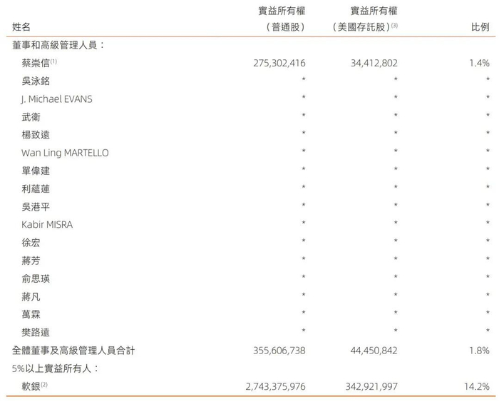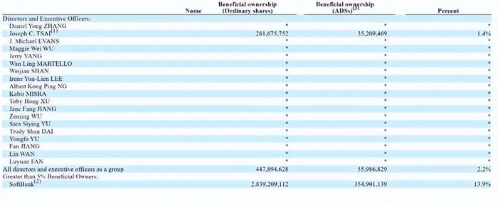 可以看出,软银持股比例有所提升,不过,阿里管理层持股依然非常少。