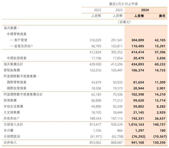 阿里2024财年营收为9411.68亿元(1303.50亿美元),同比增长8%。