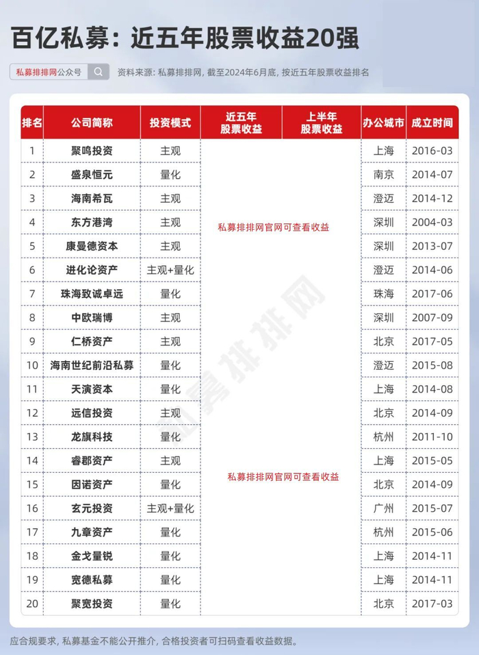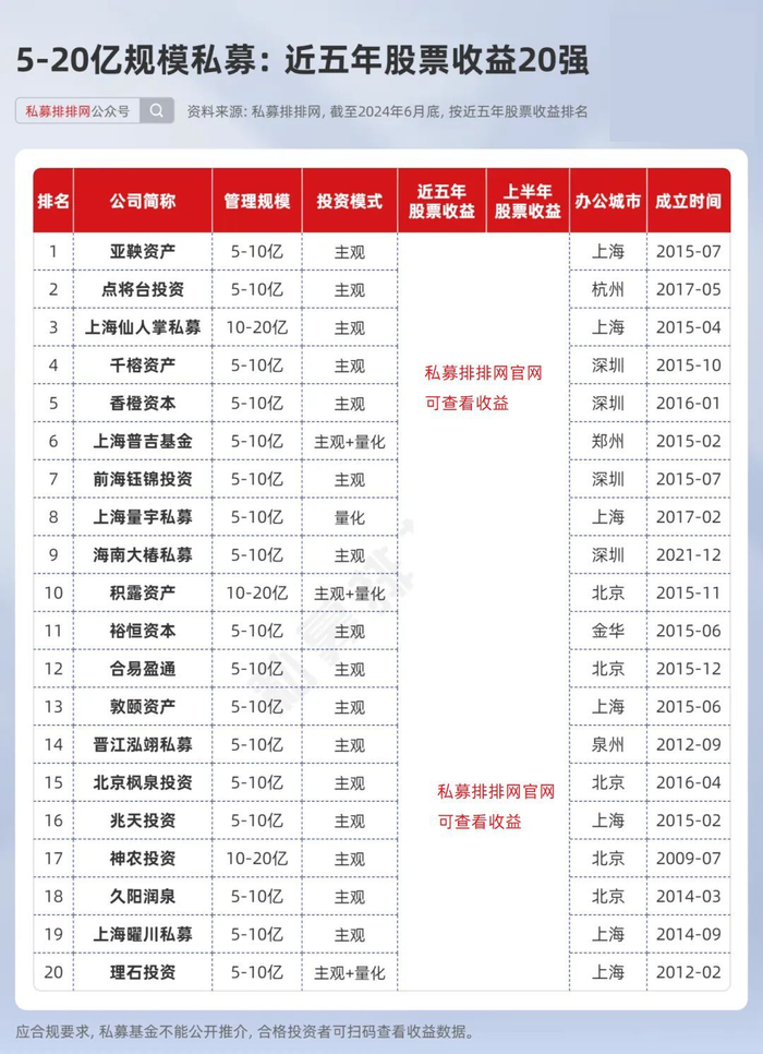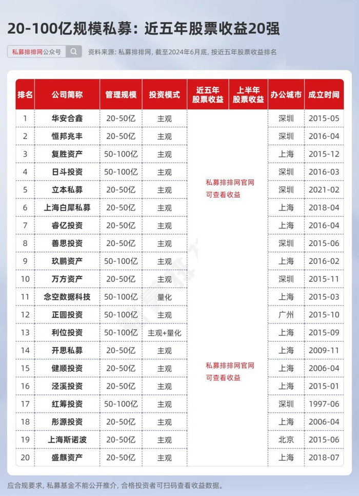 20-100亿私募:复胜资产第3!盛麒资产上榜!