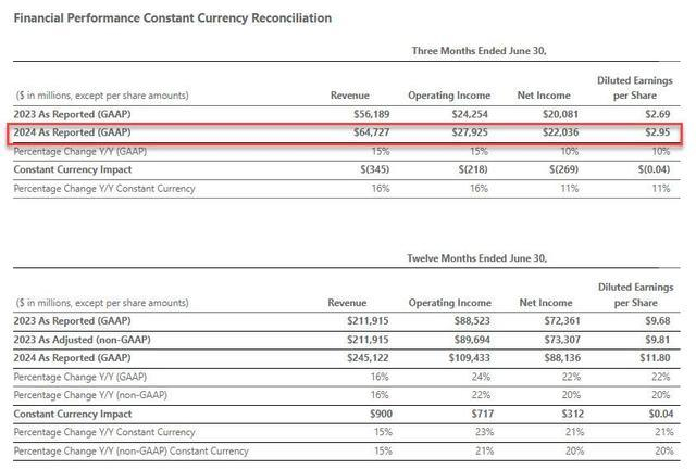 当地时间7月30日周二美股盘后,微软公布截至自然年2024年6月30日的公司2024财年第四财季财务数据,以下均称为二季度数据。