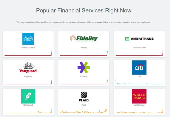 目前,尚不清楚究竟有多少客户在隔夜遇到了经纪业务问题,但数以千计的用户在停机跟踪网站downdetector.com上报告了故障……