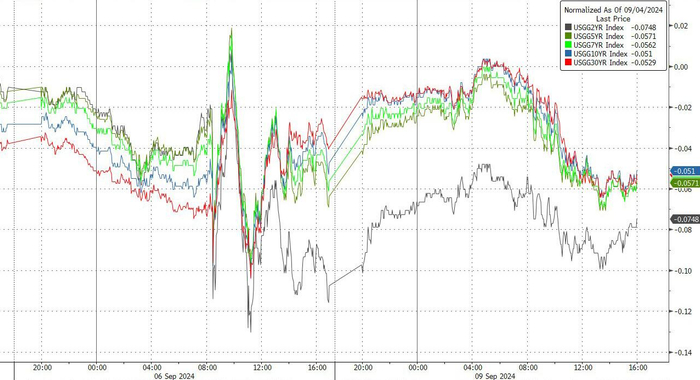 整体来看,在周一美股大幅反弹的同时,美债走势则相对温和。素有全球资产定价之锚之称的10年期美债收益率全天变化不大,仍徘徊于3.70%附近,其他各期限美债收益率的波幅也均在2个基点以内。美债价格整体并未能延续上周的涨势。