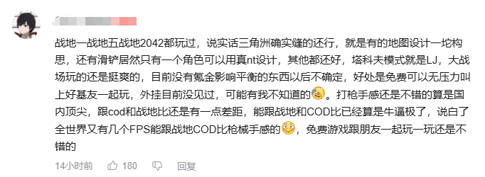 当然,一口气吃成胖子也不太现实。比如有些玩家在肯定游戏品质的同时,吐槽游戏在一些干员、地图设计上的不合理。但就游戏目前采取的免费模式,加上不俗的优化表现,他们也承认《三角洲行动》的确有潜力成为那些欧美产品的平替。