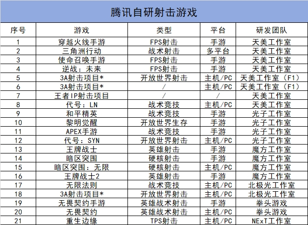 十年立项超20款,射击也是腾讯最擅长的品类
