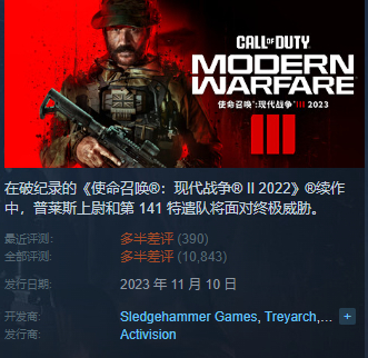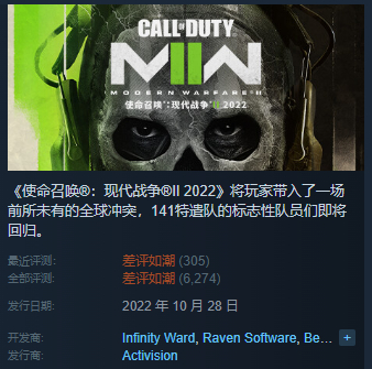 典型例子是动视,它在《COD 16》开始就学习中国厂商搞免费模式,为此从本体里独立出来了大逃杀玩法的《战区》,免费给玩家玩。然而,随着运营时间变长,《战区》的好评率已经惨不忍睹,连带本体也遭了殃。