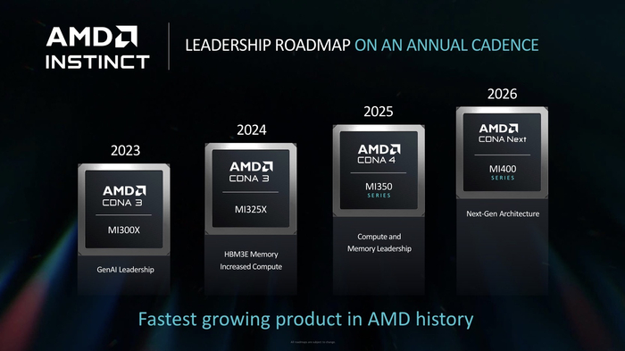 AMD还在发布会上公布了其路线图,除了以上的产品外,2026年AMD预计会发售基于新架构的MI400系列GPU芯片。