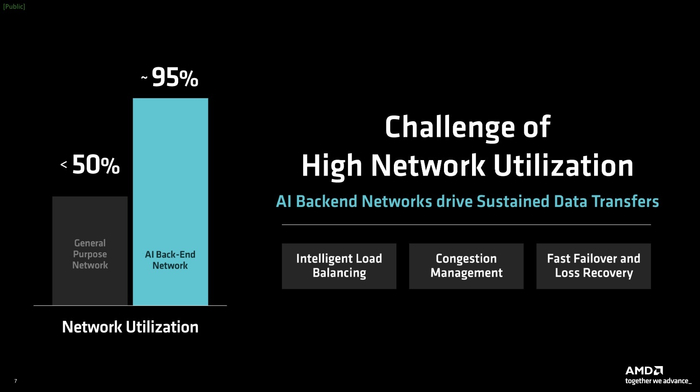 因此,通过AMD的DPU产品,其对于AI服务器网络的利用率可以达到95%,而一般未优化数据网络仅能做到不到50%。