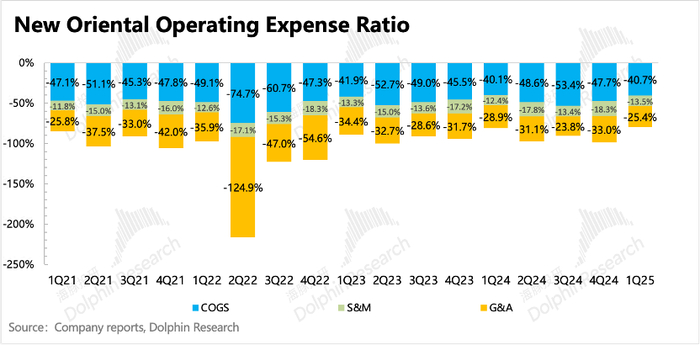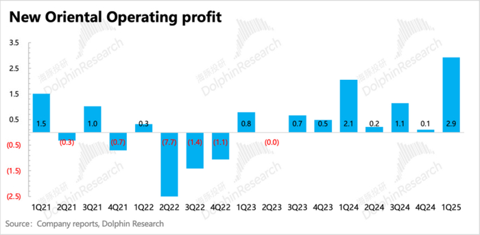 海豚君从覆盖新东方开始,就一直在强调素质教育的核心估值,弱化直播。Q1核心教育收入12.7亿,符合上季度的指引。但管理层对Q2教育收入增长指引在25%~28%区间,而这之前,公司给市场的一致是2025年30%以上的增长预期。