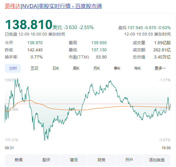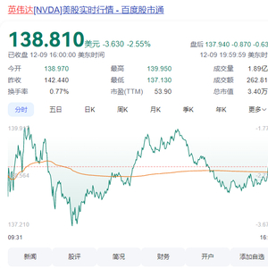 受到此消息影响,英伟达股价在周一开市后曾跌3.7%,低见137.13美元。