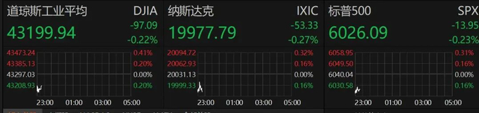 12月26日,美股三大指数集体低开,截至发稿,道指跌0.22%,纳指跌0.27%,标普500指数跌0.23%。