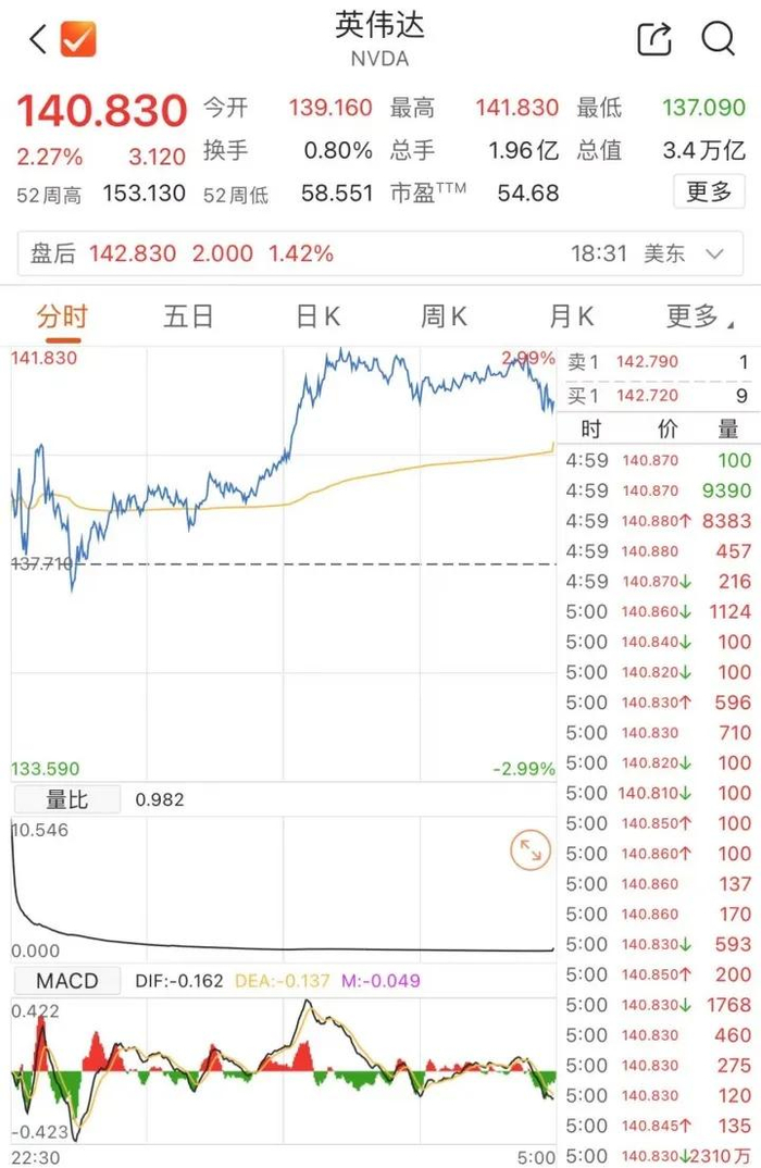 美股科技股表现强势。其中,英伟达涨逾2%,总市值超3.4万亿美元,超过苹果,重新坐回全球市值第一的宝座。而苹果当日股价跌超3%,市值一夜蒸发约1100亿美元,多家华尔街机构也在近日下调该公司评级或目标价格,对其发展前景表现出担忧。