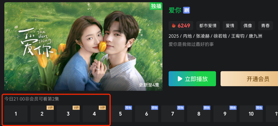 据了解,由张凌赫和徐若晗主演的电视剧《爱你》昨日在爱奇艺播出,一共上线4集,但网友发现四集均需开通爱奇艺vip才能观看。此前,各平台网播电视剧上线前几集通常都可免费观看拉新用户,不少网友因此吐槽爱奇艺“吃相难看”。