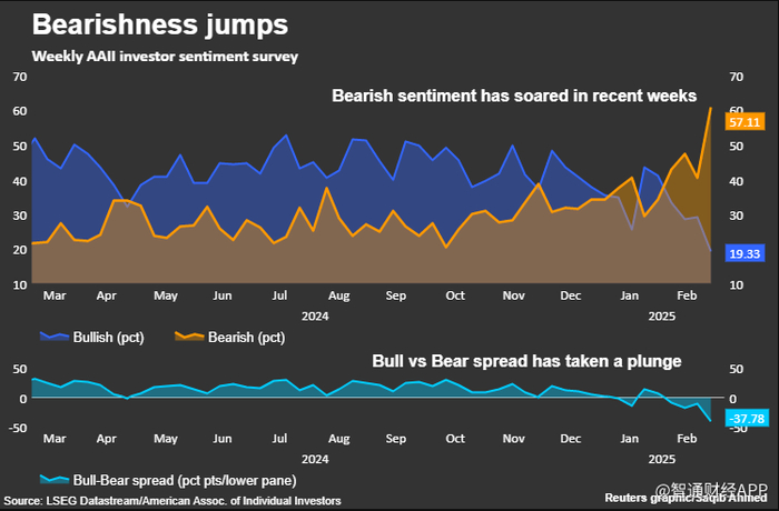 美国个人投资者协会(AAII)最新的情绪调查显示,个人投资者对美国股市短期前景的悲观情绪达到两年多以来的最高水平。