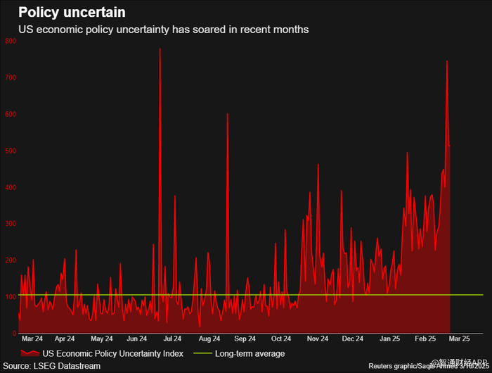 特朗普的政策反复无常加剧了企业、消费者和投资者的不确定性,导致谨慎情绪高涨。
