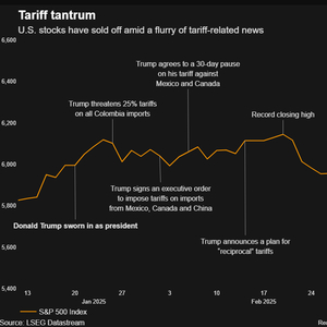 特朗普政府针对加拿大、墨西哥等主要贸易伙伴的反复关税举措严重打击了投资者对高风险资产的兴趣。