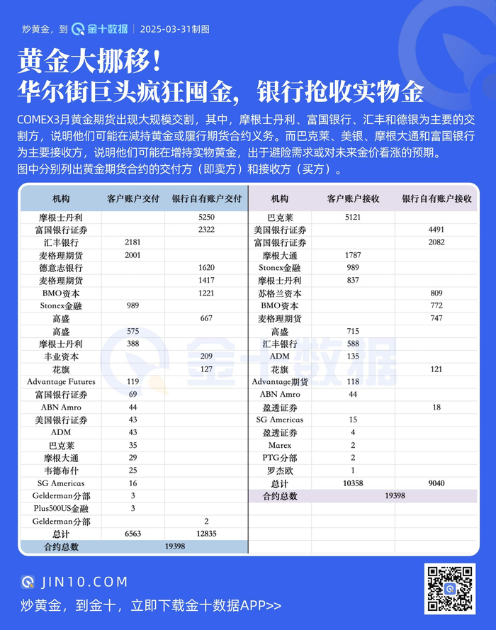 COMEX期金四个月交割量超全年!摩根大通等投行秘密调仓