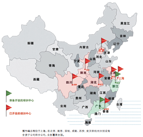 目前博为峰在培训机构的布局上,上海总部立足服务长三角。北京博为峰为北京及周边地区的学员和企业提供软件测试培训服务。成都博为峰为四川及周边地区的学员和企业提供软件测试培训服务。南京博为峰为江苏部分地区和安徽地区的学员和企业提供软件测试培训服务。深圳博为峰为广东和周边的学员和企业提供软件测试培训服务。去年新开的武汉和西安分部也步入快速发展阶段,为中西部学员提供便利。