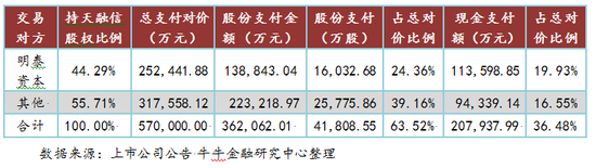 2016年8月3日,南洋股份发布《发行股份及支付现金购买资产并募集配套资金暨关联交易报告书》,南洋股份拟通过定增及现金方式购买明泰资本等6机构及章征宇等21位自然人持有的天融信股份100%股权。同时,向鸿晟汇等9家机构定增募集配套资金,募资总额不超过本次交易拟发行股份购买资产交易价格的100%。发行股份购买资产和募集配套资金共同构成此次交易不可分割的组成部分。