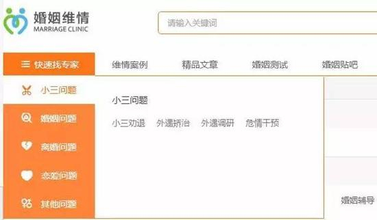 在上海维情的官方网站上,解决“小三问题”的权重列在最前,“小三劝退”也属于“小三问题”的第一项服务。