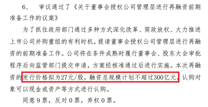 当时定向增发的价格时18元,仅两次增发就融资了超过70亿元。