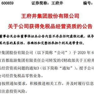 6月9日晚,王府井公司发布公告称,公司被授予免税品经营资质,允许公司经营免税品零售业务。此次王府井拿下免税牌照,被业界当作百货业变革的转折点。
