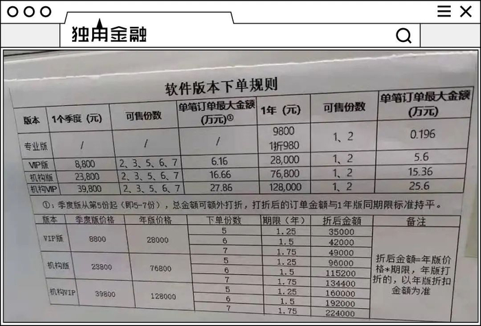 在警方披露的会员价位表中可以看到,最低一档为9800元/年,往上还有2.8万元/年、7.68万元/年、12.8万元/年等不同档位,并且根据销售额的不同,业务员能够从中拿到3%-10%的业绩提成。