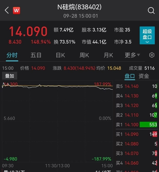 其中登陆创业板的逸豪新材开盘直接破发,另外一只登陆创业板的鸿日达上涨近50%。最让人惊艳的,则是登陆北交所的硅烷科技,开盘3分钟就爆涨188%,最终收盘时仍然上涨近148.94%。