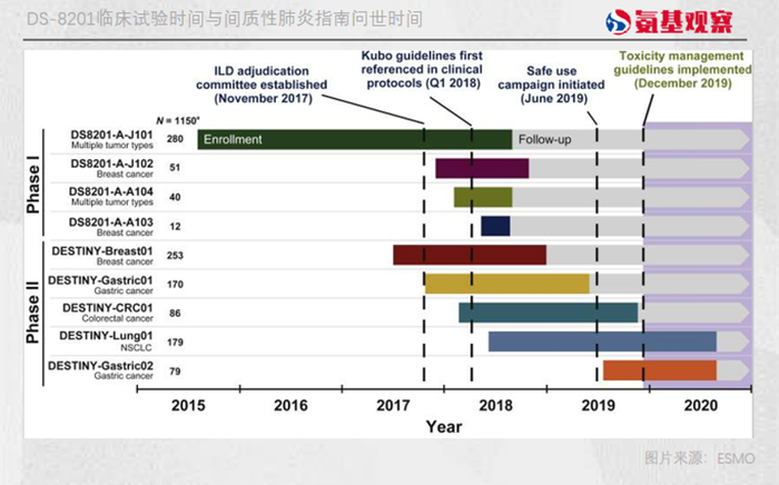 这不难理解,DS-8201刚刚进入临床试验阶段,ADC药物造成间质性肺炎的案例并不多,在T-DM1药物的使用中,间质性肺炎的发生率不过0.5%。所以,早期第一三共/阿斯利康并未提前预知,对间质性肺炎做出应对。